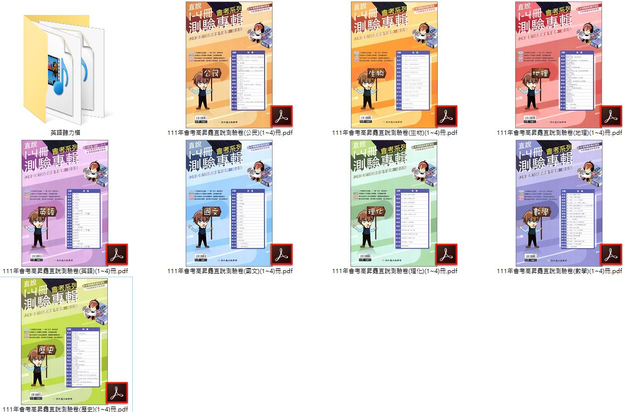 111年國中會考 高昇鑫 直說測驗卷 1~4冊 總複習 卷類光碟