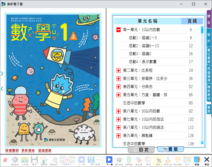 112學年上學期 國小 康軒版 數學電子書 1年級(含課本、習作含解答、教學資源)教學光碟
