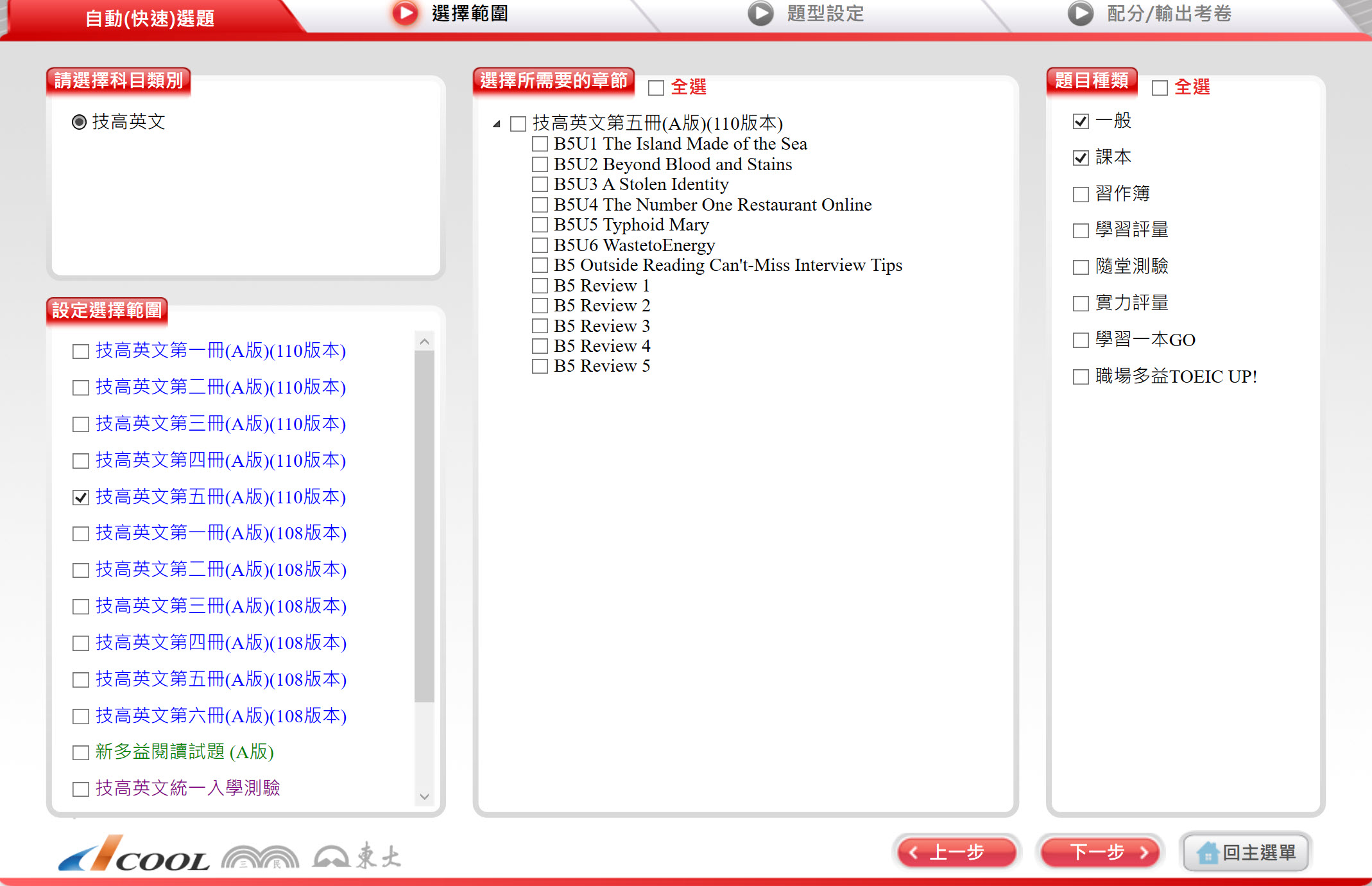 112學年上學期 技術高中命題光碟 三民東大版 英文科(A版 1-6冊)(108課綱) 題庫光碟