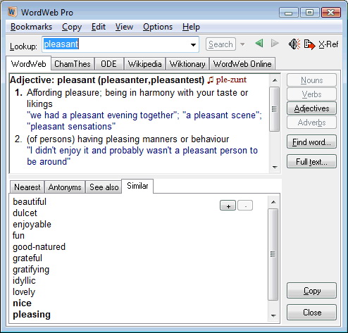 WordWeb Pro 本軟件收錄了 100000 條語法和 120000 條基礎單詞,詳盡的闡述了單詞