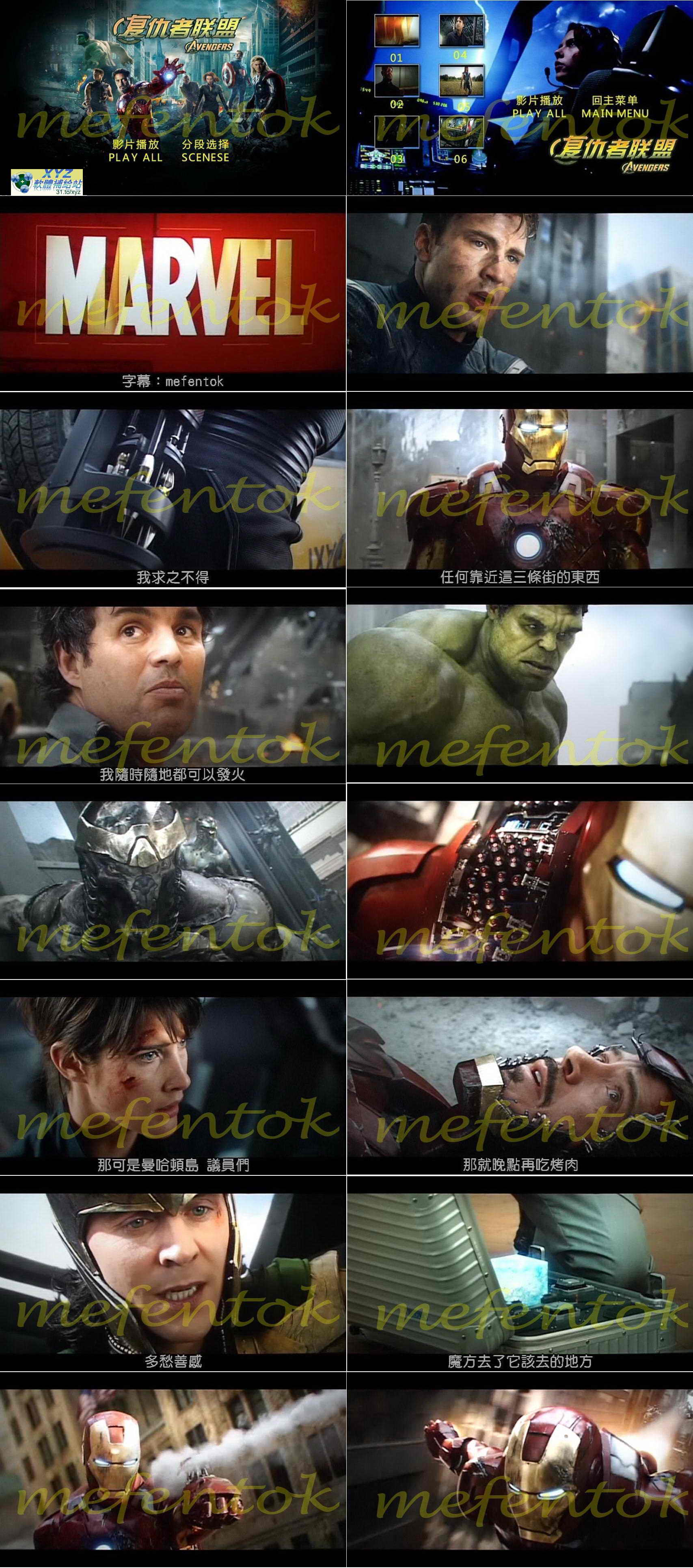 • 復仇者聯盟 英語/國語發音(清晰正式版畫質) + 鋼鐵人 1 (正式版畫質) + 鋼鐵人 2 (正式版畫質) + 無敵浩克 (正式版畫質) + 雷神索爾 (正式版畫質) + 美國隊長 (正式版畫質) 繁體中文字幕合輯版(DVD9版)(可在家用DVD機播放)