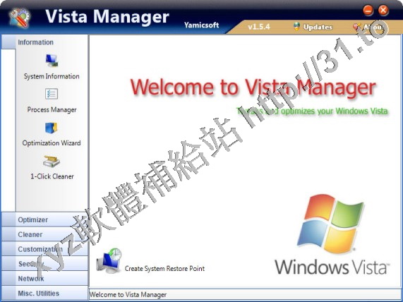 • Yamicsoft Vista Manager v1.5.1 英文正式版(優化及設置 Windows Vista的系統工具軟體)